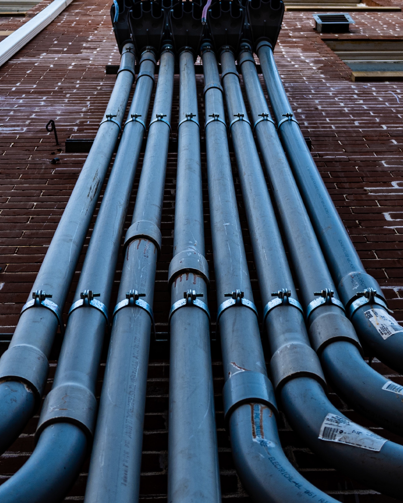Any building requires a certain amount of internal infrastructure to function, which includes such elements as heating/cooling, power, and telecommunications, water, and wastewater, etc. Especially in commercial buildings (such as offices or factories), these can be extremely intricate systems taking up large amounts of space (sometimes located in separate areas or double floors/false ceilings) and constitute a big part of the regular maintenance required.